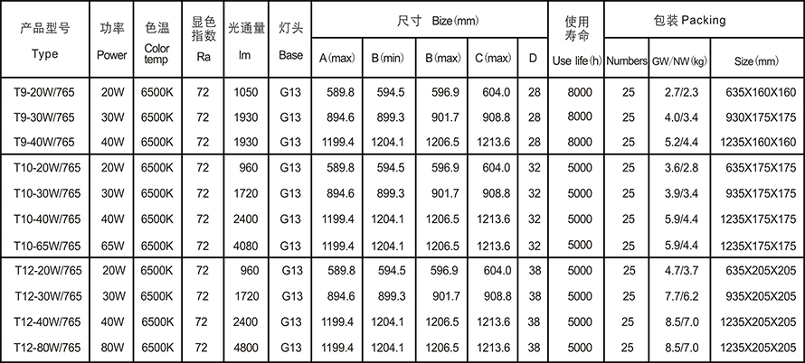 - T9/T10/T12 Halogen fluorescent lamp